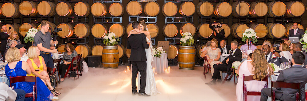 The wedding day flows nicely at Leoness Cellars, an amazing vineyard destination location known for their wine, views, and is ranked #5 in “83 Best Things to Do in Temecula” according to Trip Advisor. With over x amount of renovations completed in x time 2018, this spring wedding had the perfect Southern California weather with vines sprouting far overhead. The private ceremony site overlooks the vast array of green vineyards and valleys. Along with the barrel room, which held the reception that can seat over x amount of people, the stage was set with wonderful up lighting and decor to make for a magical night few will soon forget.
